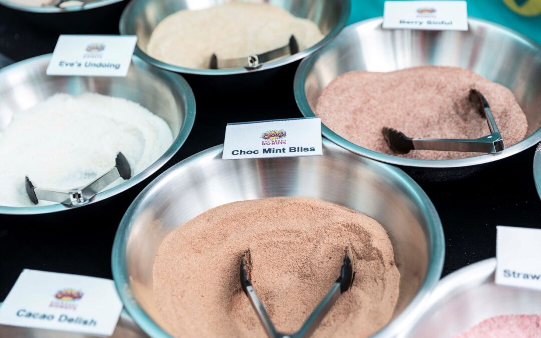 The idea for the funky flavour combos came about when OMG Director David Moore was eating a regular hot cinnamon donut. As a former chef, David has a creative mind and he wondered to himself what a donut would taste like if it was dusted in other flavours. He borrowed a friend’s dehydrator and started playing. Blending dehydrated raspberries with cacao, chilli and sea salt – voila – Berry Sinful was born. Then he put together ginger with cardamom, cinnamon, cloves and nutmeg and black pepper – and there was Spicy Ranga. Even David was surprised at how great the flavour dubbed Beet-a-licious turned out to be – it’s a whacky combination of beetroot, coconut milk, cinnamon and ginger – it really has to be tried to be believed.